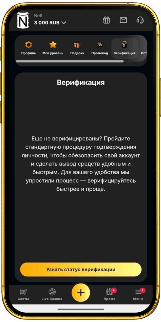 В Нефть казино верификация (KYC — Know Your Customer) является обязательной частью политики безопасности платформы. Она нужна для подтверждения личности пользователя, защиты финансовых операций и предотвращения случаев мошенничества.