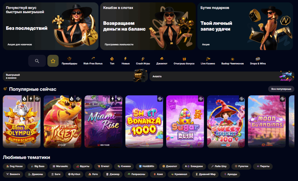 - Слоты. Более тысячи автоматов от популярных провайдеров с разными темами, уровнями риска и бонусными механиками.